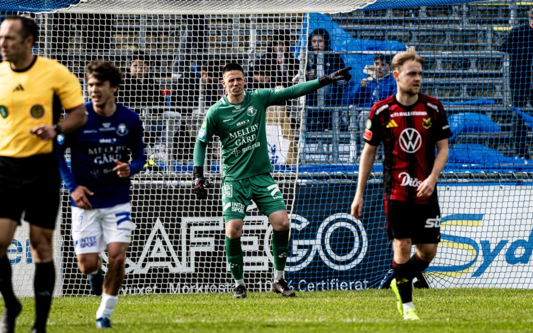– Vi börjar ju egentligen bra och är mycket på deras planhalva, skapar också halvchanser. De har en vass dubbelchans – men där Larsen gör fantastiska räddningar.