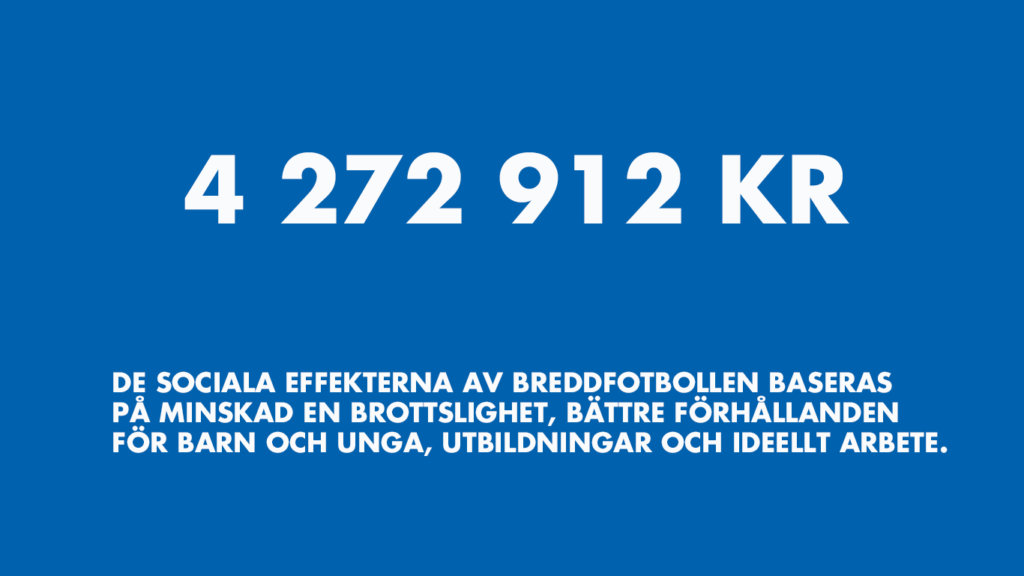 4 272 912 kr – De sociala effekterna av breddfotbollen baseras på minskad en brottslighet, bättre förhållanden för barn och unga, utbildningar och ideellt arbete.